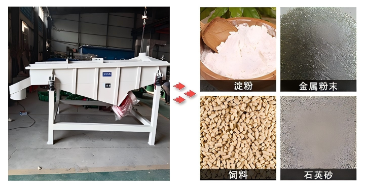直线震动筛主要针对干式粉状与颗粒状散料进行筛选。其筛分范围覆盖广泛,从粗颗粒如石英砂、塑料颗粒,到细粉末如面粉、金属粉、化工原料等均能有效处理。对于具有一定流动性的湿式物料,如含水量适中的矿粉或浆料,设备通过调整倾角与激振力亦可实现固液分离或脱水作业。此外,该设备对轻质物料如木屑、活性炭,以及重质物料如金属矿渣、磨料等不同比重特性的散料均具备良好的分级与除杂能力。