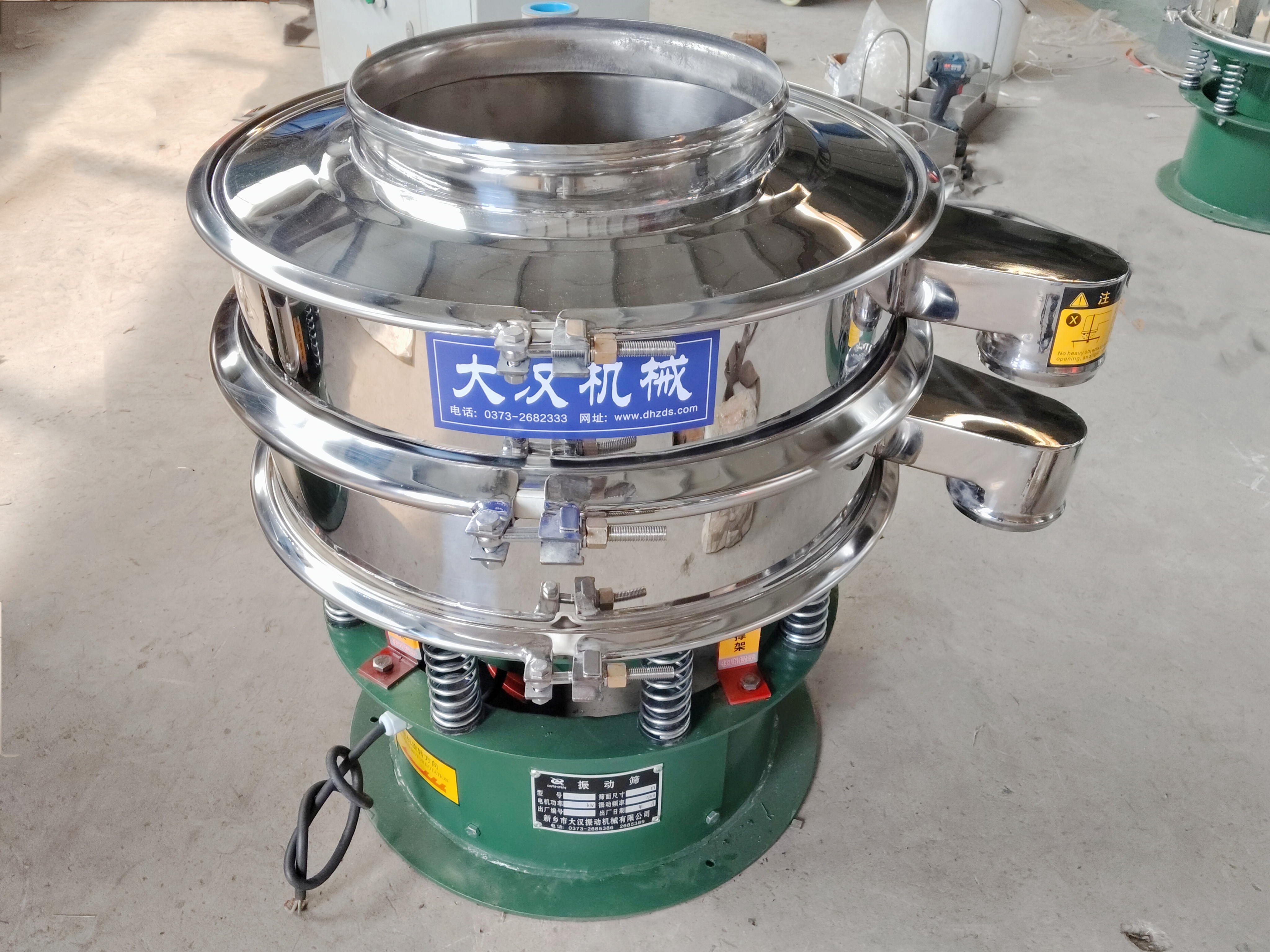 旋振筛是圆形通用筛分设备,筛面直径按需适配工况,层数可做1-5层定制化设计,采用立式振动电机作为激振源,物料在筛面做三维圆周旋振运动,筛分无死角、细料透筛率高,有效杜绝物料堆积、筛分不匀问题,能够筛分粉末、颗粒、液体等不同类型的物料。